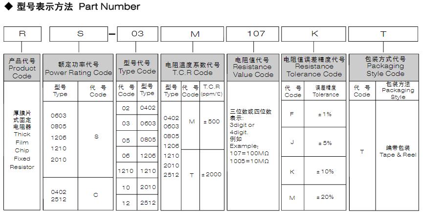 風(fēng)華高科高阻值厚膜片式固定電阻器型號(hào)表示方法: