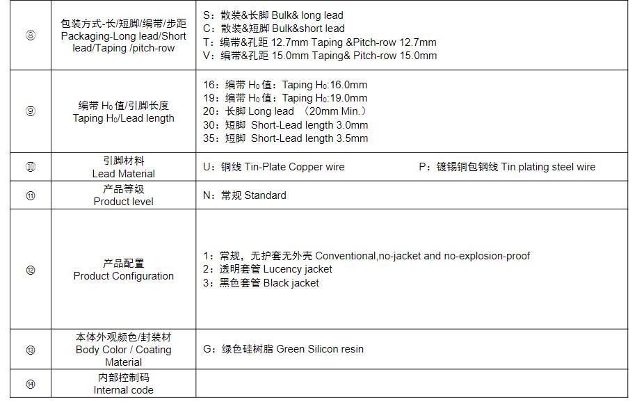 風(fēng)華高科T系列壓敏電阻器型號(hào)命名規(guī)則: