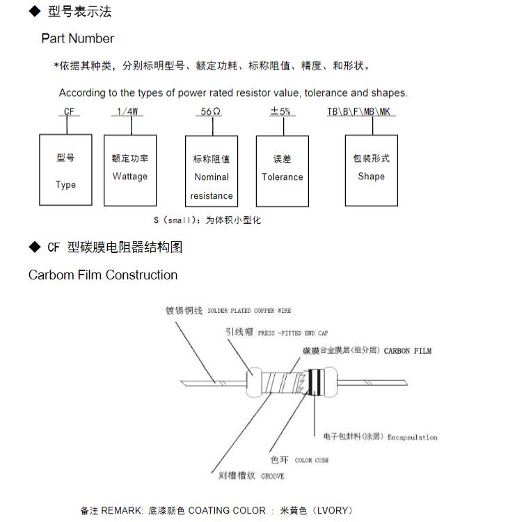 風華碳膜電阻器命名規(guī)則: