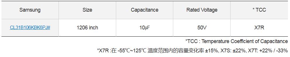 ?對此,三星電機采用獨有的陶瓷及微粒化電極材料和超精密的疊層工藝,在1206 inch (3.2×1.6mm) 、電壓 50V上成功開發了 X7R 10?產品。