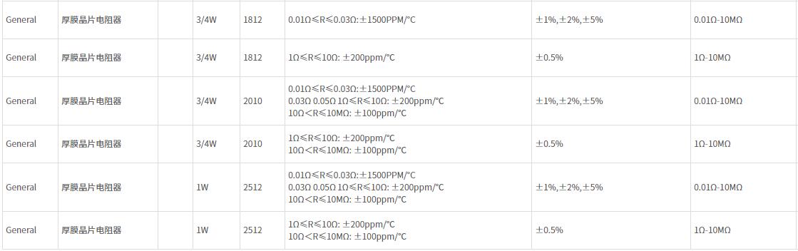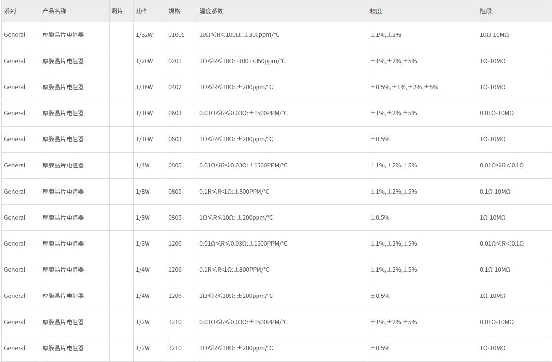 厚聲厚膜電阻全系列: