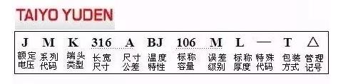太誘貼片電容型號識別: