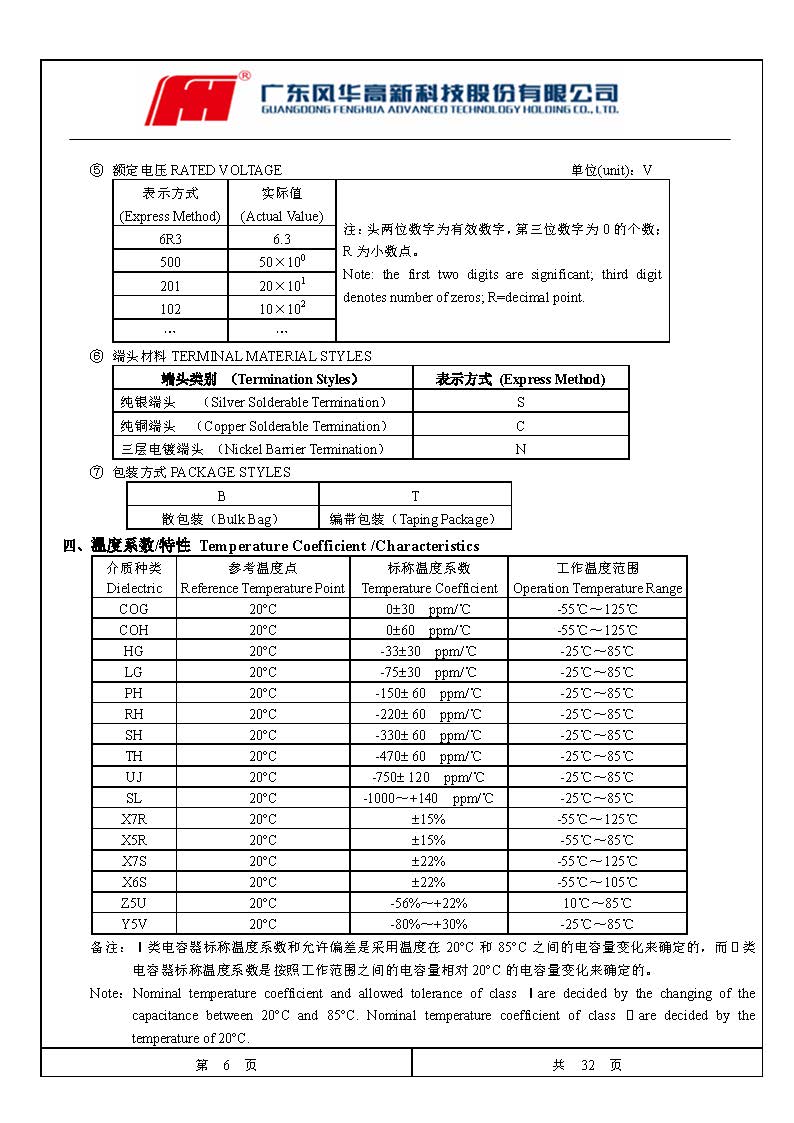 風華高科貼片電容命名規則對照表